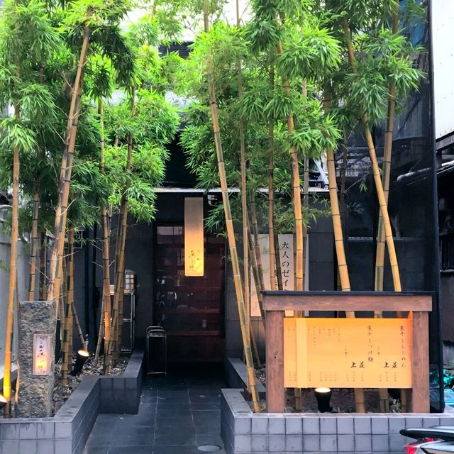 入口に竹が植わった純和風な佇まいは、回りのビルだらけの風景に比べて、かなり異彩を放っています。