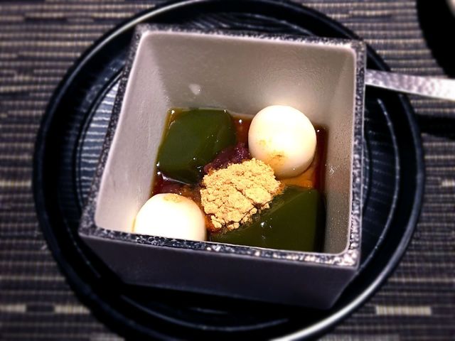 嬉野茶のわらび餅です。お茶の香りが口の中で広がり爽やか。
