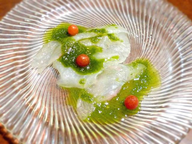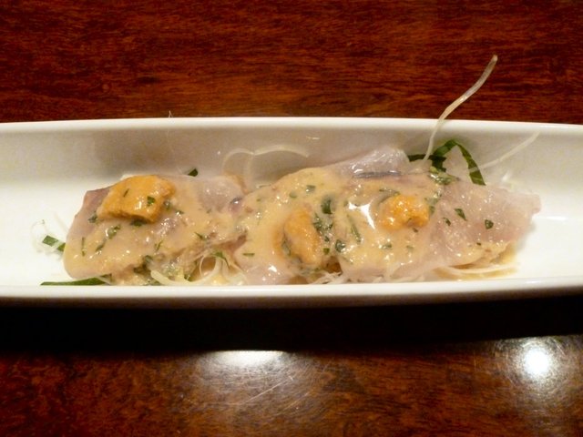 縞鯵のカルパッチョ 生ウニソース 2012.7.10