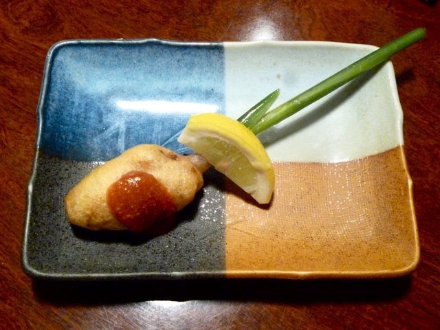 よもぎ麩の串揚げ柚子味噌ソース 2024.3.15