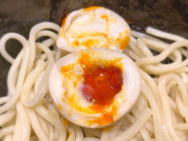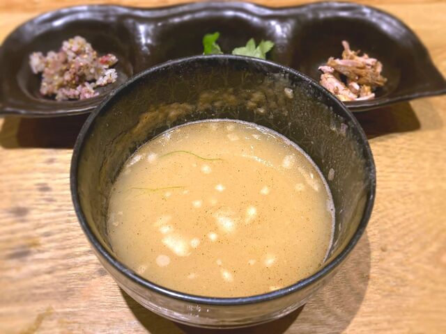 つけ汁は豚鶏魚介の素材を高気圧で炊き、旨味がギュッと濃縮されています。