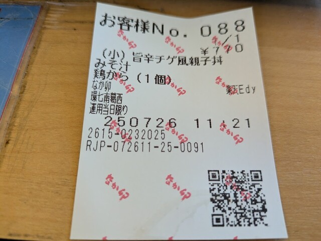 旨辛チゲ風親子丼(小)、みそ汁ととりから(1ケ)のセットでいただきました