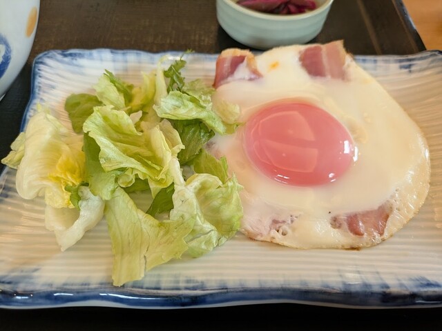 ハイカラうどんとベーコンエッグの朝食セットいただきました