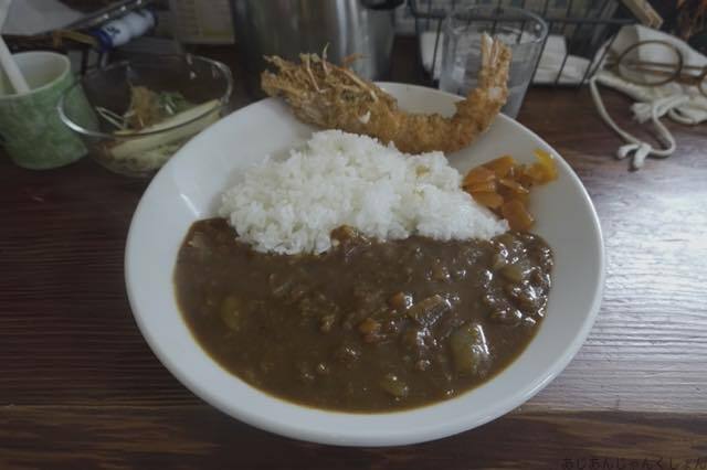 海南市、船尾、「Maxim Cafe (マキシム カフェ)」のエビフライカレー。 │ あじあんじゃんくしょん