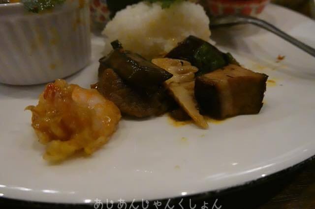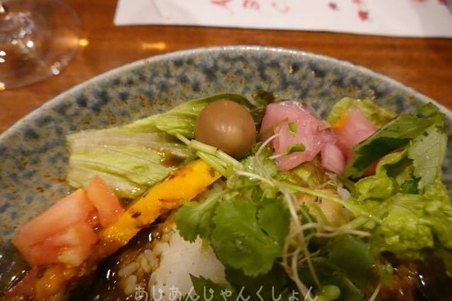 わしは、ポークカリィ叉焼スタイルをいろいろ少なめでいただく。白ワインをつけて。