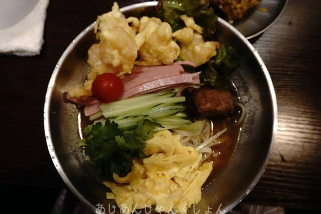 では、やっぱり冷麺を、お供には、暑さ対策、カレー炒飯を、ご飯少なめで。
