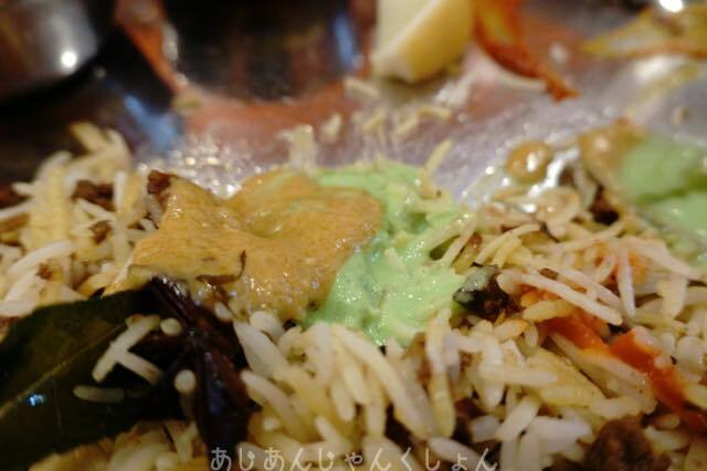 やっぱり一番先にある曜日限定のマトンピラウをちょい少なめでお願いする。