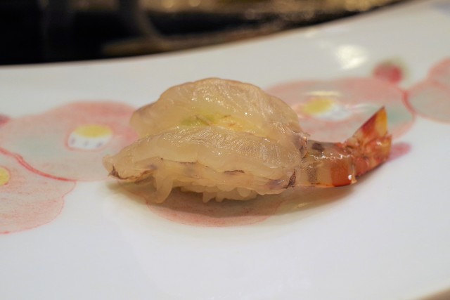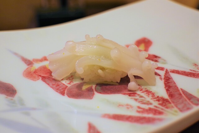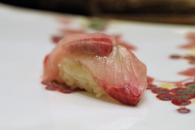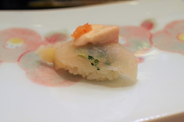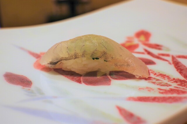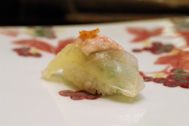 火曜日の昼にに伺って3,000円の特上にぎりを頂く。今日の白身は「カワハギ」で貝は「栄螺」そしてヒカリモノは「鰯」だった。 「栄螺」が美味しく感激する。