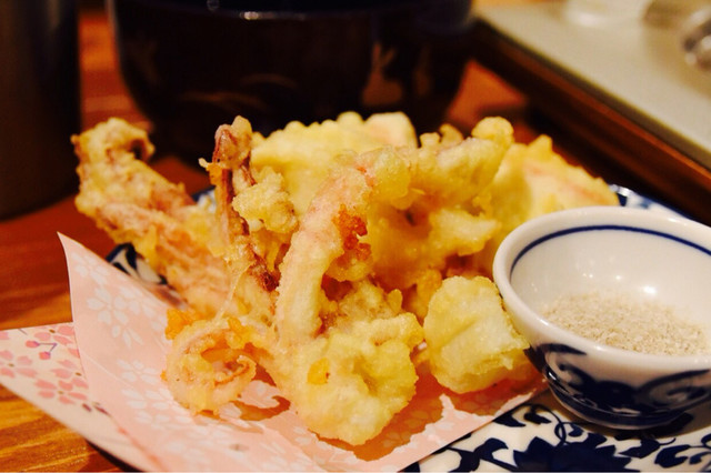 泳ぎ活イカのゲソは炭火焼きか天ぷらにしてもらえます。