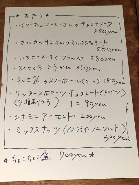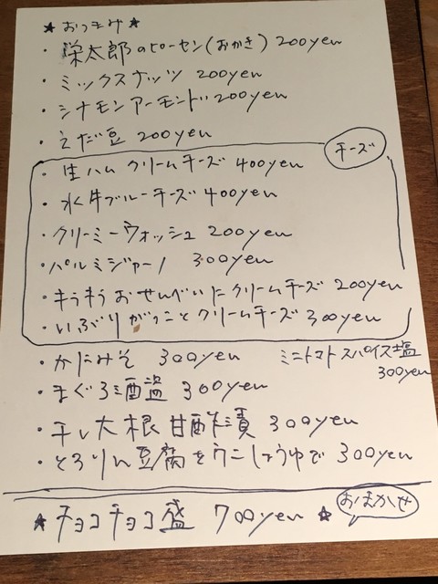 2ドリンク+お酒のあて・おやつ¥2000という