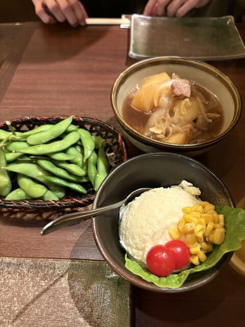 肉じゃがは牛すじでポテサラは滑らかな舌触りでした