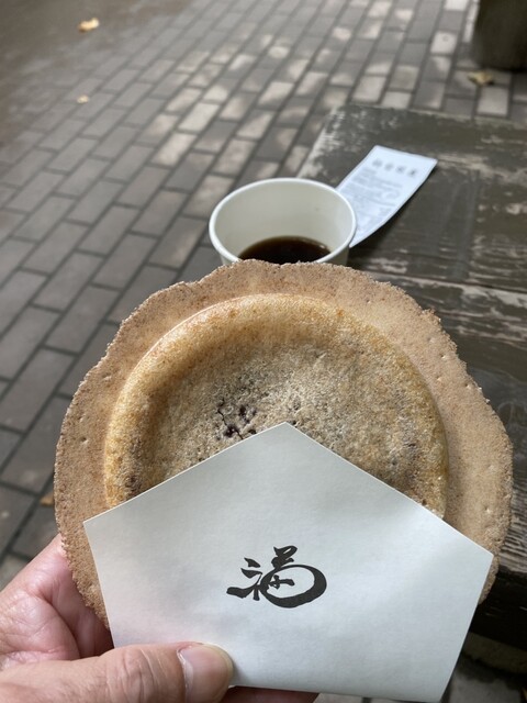 福レ餅は、こし餡が入ったら大福を鉄板で挟み焼きしたものです。