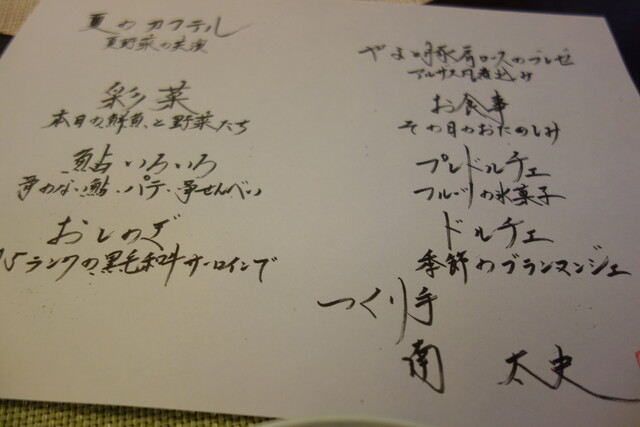 夏の季節のコースをいただきました、因みに飲み物はかなりお得ですよ