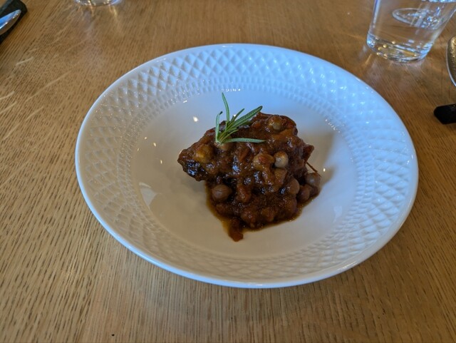 肉料理はジビエの逸品としてイノシシの煮込みです、少し甘目に良く煮込んだイノシシと一緒に絡めたひよこ豆が実に良く合いますね。
