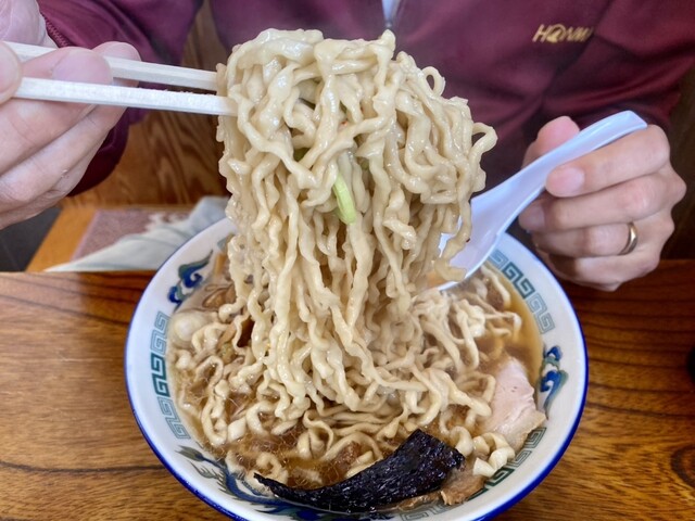 そして、平打ちちぢれ麺の麺が美味しいです。