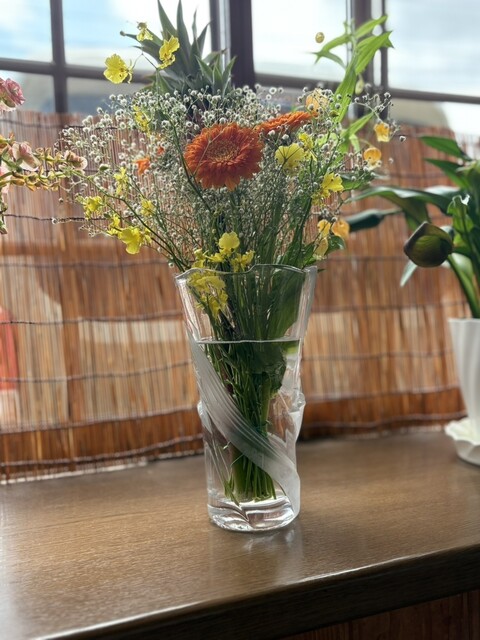 出窓には、いつも綺麗なお花が✨
