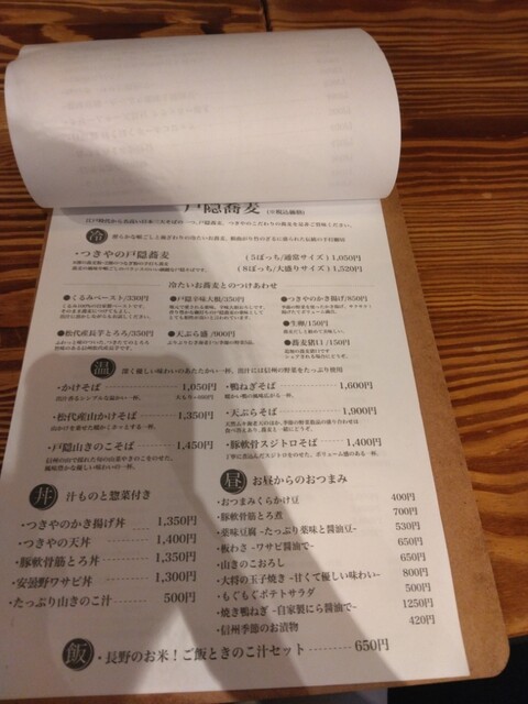戸隠蕎麦が長野市・善光寺門前で食べられると言う事で、戸隠蕎麦の普通盛を注文。でもそれだと量が少ないんだよなと思って、ミニわさび丼とかき揚げを注文。