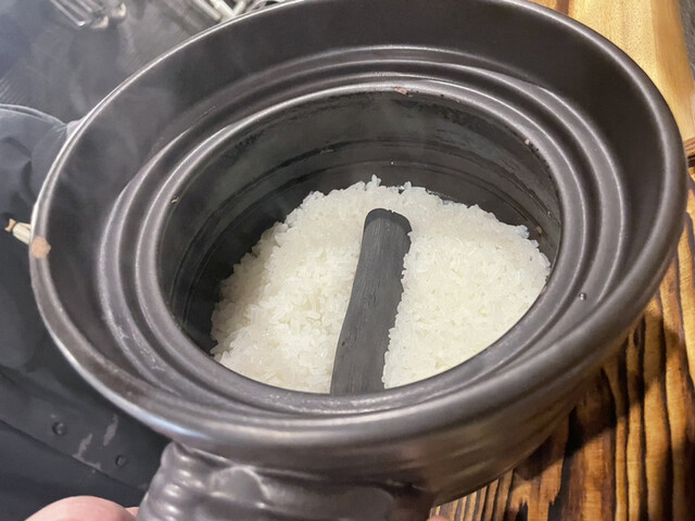真っ赤な備長炭をセットしてもらってお食事開始。