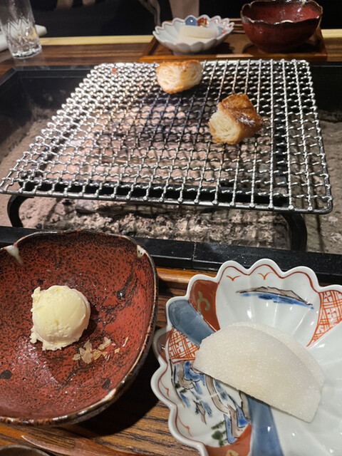 コース名通り。日本各地の美味しいもの珍しいものを楽しく炭火を囲んで焼いて食べる。