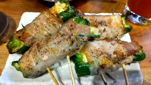 ピーマンチーズ肉巻きはトロトロチーズで激ウマ。笑顔の接客が最高です‼