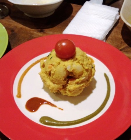 ポテサラはマヨネーズではなくスパイスであえた感じだ。