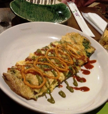 パクチーたまご焼き(350円)はパクチーとタマネギ入りの玉子焼き。