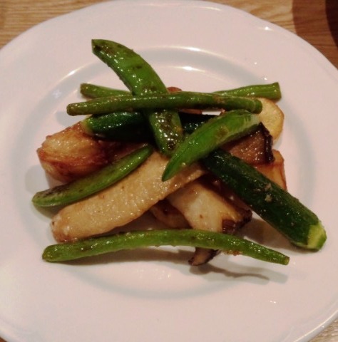 野菜のソテーはニンニクがしっかり効いた飲み屋仕様。必然的にワインが進む。