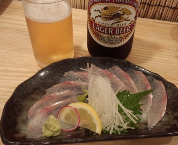 お通しは無いようなので、早く出てきそうなホウボウ刺し(税込380円)をお願いする。