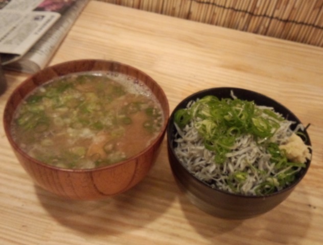 シラスご飯はまぁそれなりな感じだったが、味噌汁(あら汁)が美味すぎ。