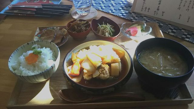 しばらくして出された一汁三菜定食であるが、ご飯は婦人用の茶碗に一杯程度。