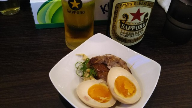 まずはコップまでちゃんと冷えた赤星が出されるが、味玉はなかなか出てこない。