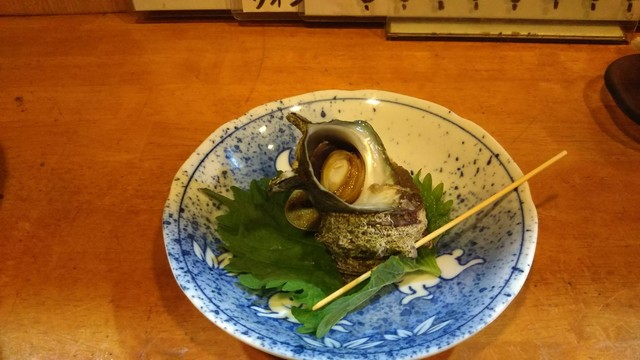 お通しの二品目はサザエのつぼ焼き。