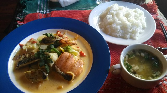 これに野菜とキノコが入ったスープ、ライス、食後のコーヒーまでついて