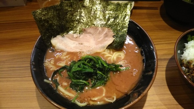 主役の家系ラーメンは濃厚な豚骨スープであり、原材料をケチって無いのがよくわかる。