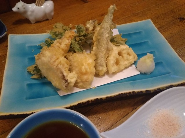 しばし後に出された天ぷらは、甘鯛は一口サイズが三切れ、れんこん、おくら、しめじ、春菊という構成だ。