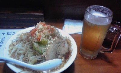 二郎インスパイアなラーメンと生ビールがセットになった品だ。