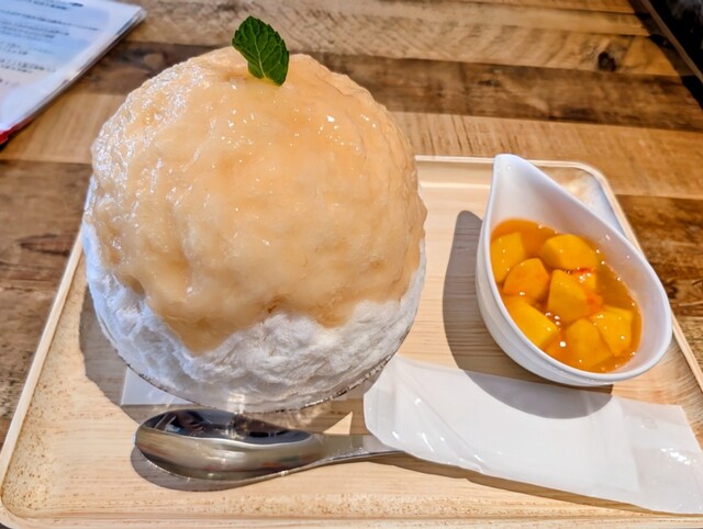 練乳の甘さとモモの味と香りが合わさっって甘くて美味しい!
