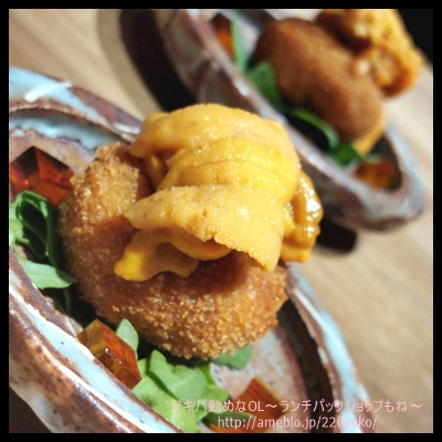 ●和牛のメンチカツ 北海道根室雲丹のせ