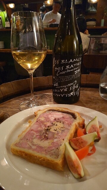 本日は、パン、オリーブ、テリーヌ、そしてワイン、という黄金比率の正面突破。