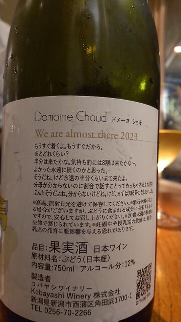 新進気鋭の新潟ドメーヌ。想いがボトルに書かれてある。
