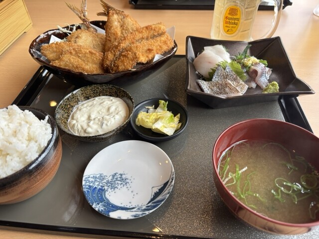 ランチで伺いフライ定食と特刺身定食を食す。刺身&フライが美味しくWウマウマ。 タルタルソースが良い味。昼からビールが進む!