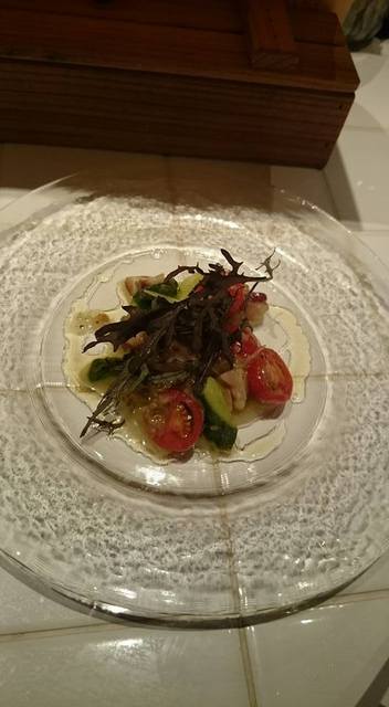 タコのマリネ、自家製ソーセージ、海鮮のプッタネスカ、かな。