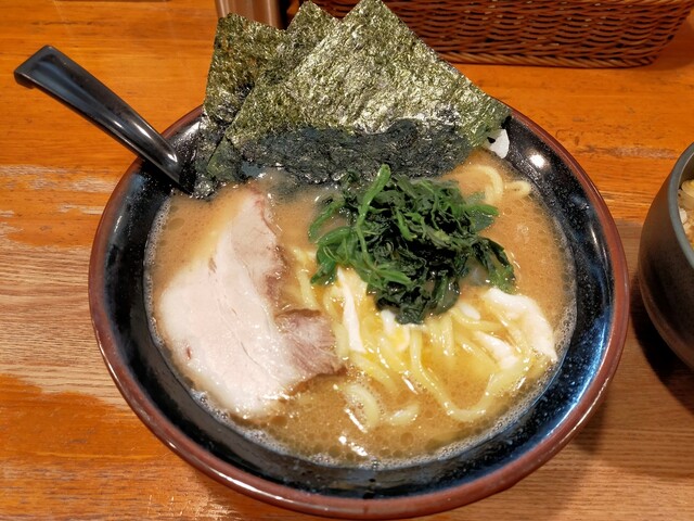 駅からは少し歩いたところにある家系ラーメン店。立地が悪いにもかかわらず並びが出ており、15分ほど並んでからの入店。