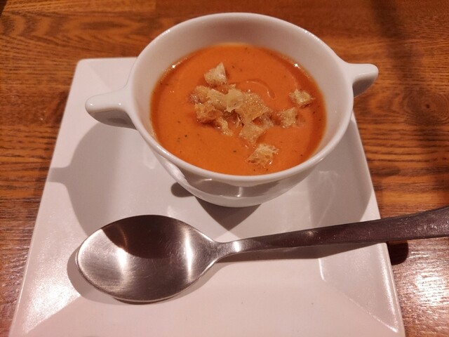 今回はカリカリとしたクルトンの浮いた、冷たいガスパチョ。