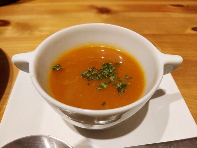 突き出しの野菜スープは、いろいろな野菜のゴロゴロ入ったスープです。