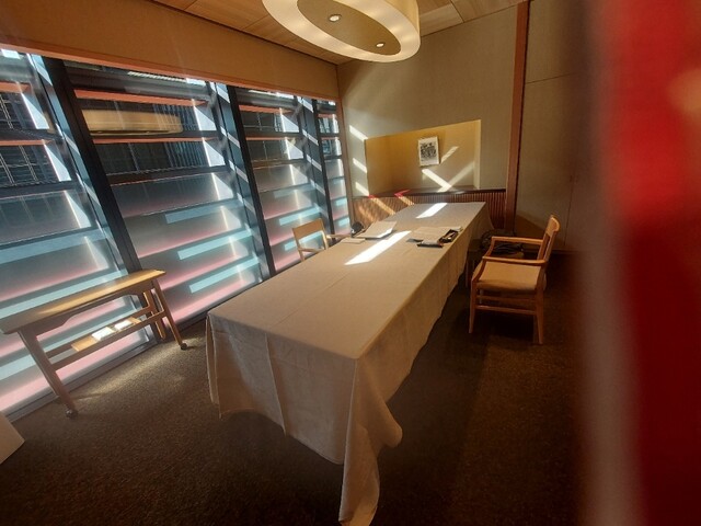 ビルの4階にある、こちらの吉兆。お庭が見えたりはしないのですが、十分接待に使える雰囲気です。二人だけなのに六人ならゆったり、八人だって座れる広いテーブル席の個室に案内されました。贅沢~ぅ。