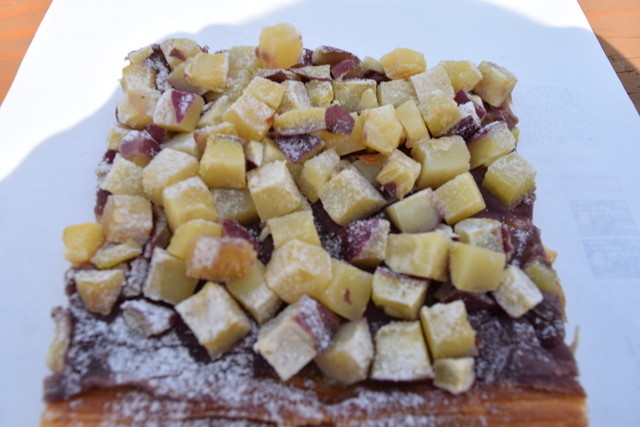 私がますや麦音店を訪ねるとき必ず食べるパンさつまいもがたくさん上に乗っています。
