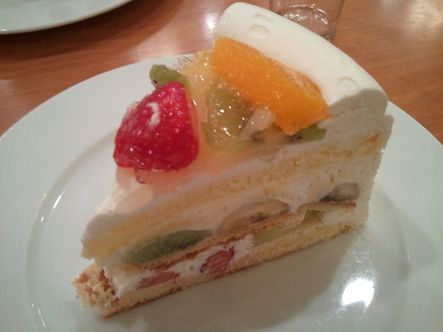 ケーキにはイチゴやキウイ、バナナがごろごろとサンドされていていました。
