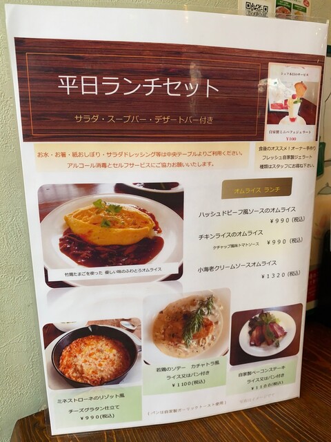 ※メニュー、看板を見ると。。コロナ禍でなければ「サラダバー」もあるみたいですね('ω')ノ