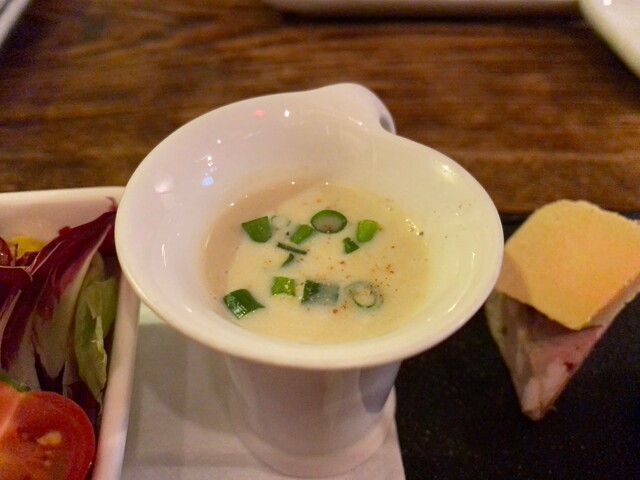 ・冷製スープは、枝豆かな。意外に、癖がなく、ほんのり甘め、美味しかったです(^_^)v